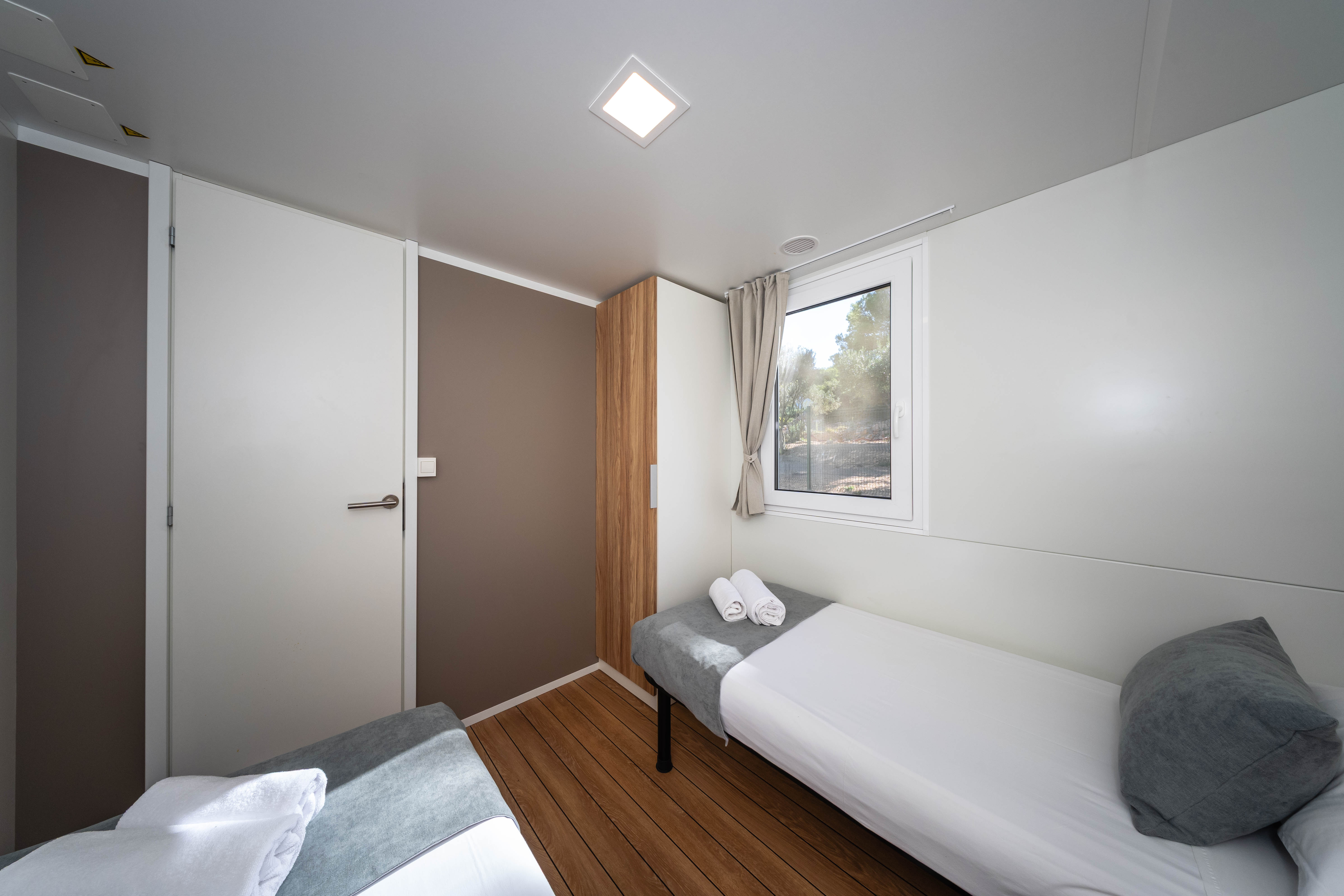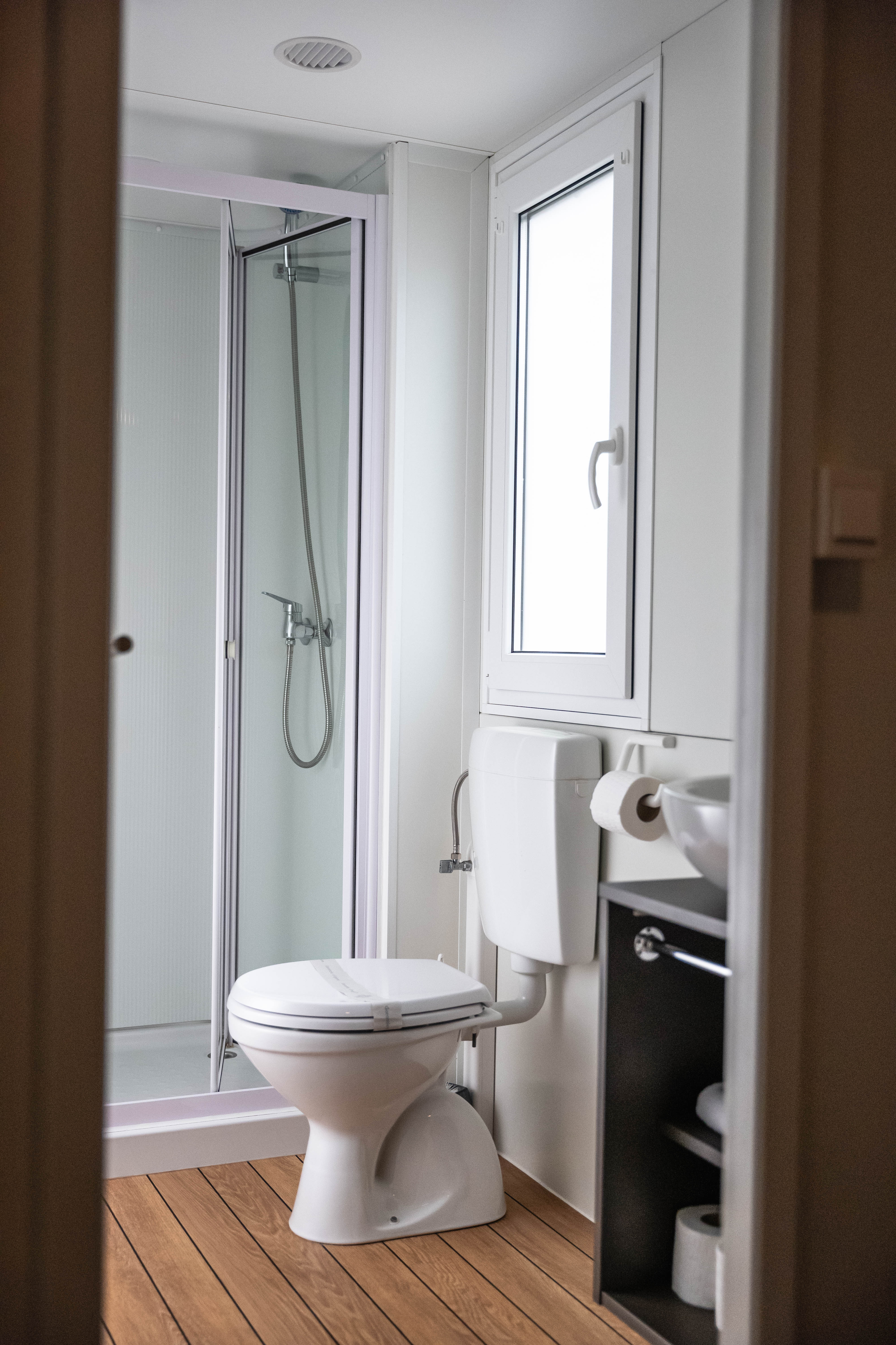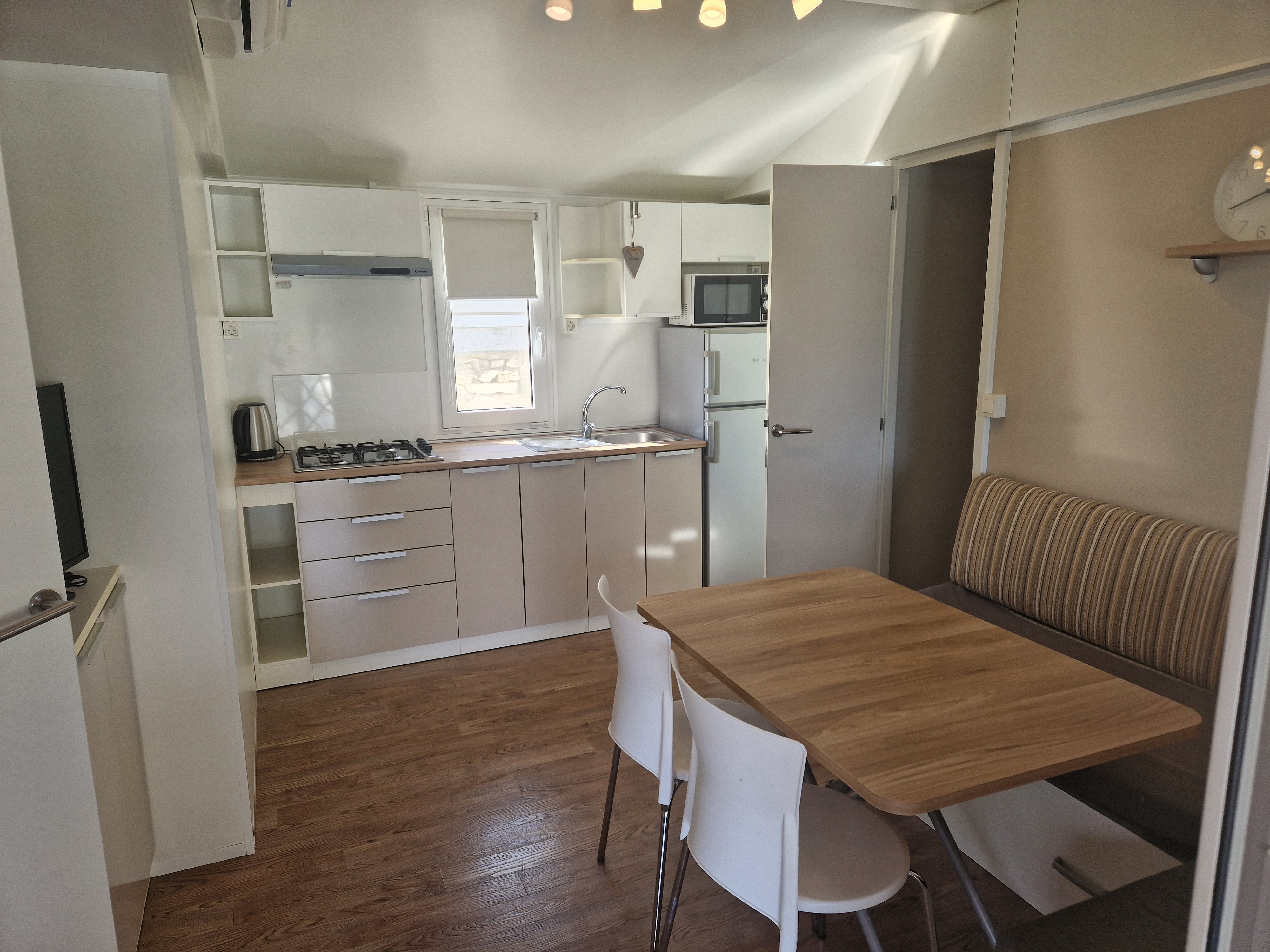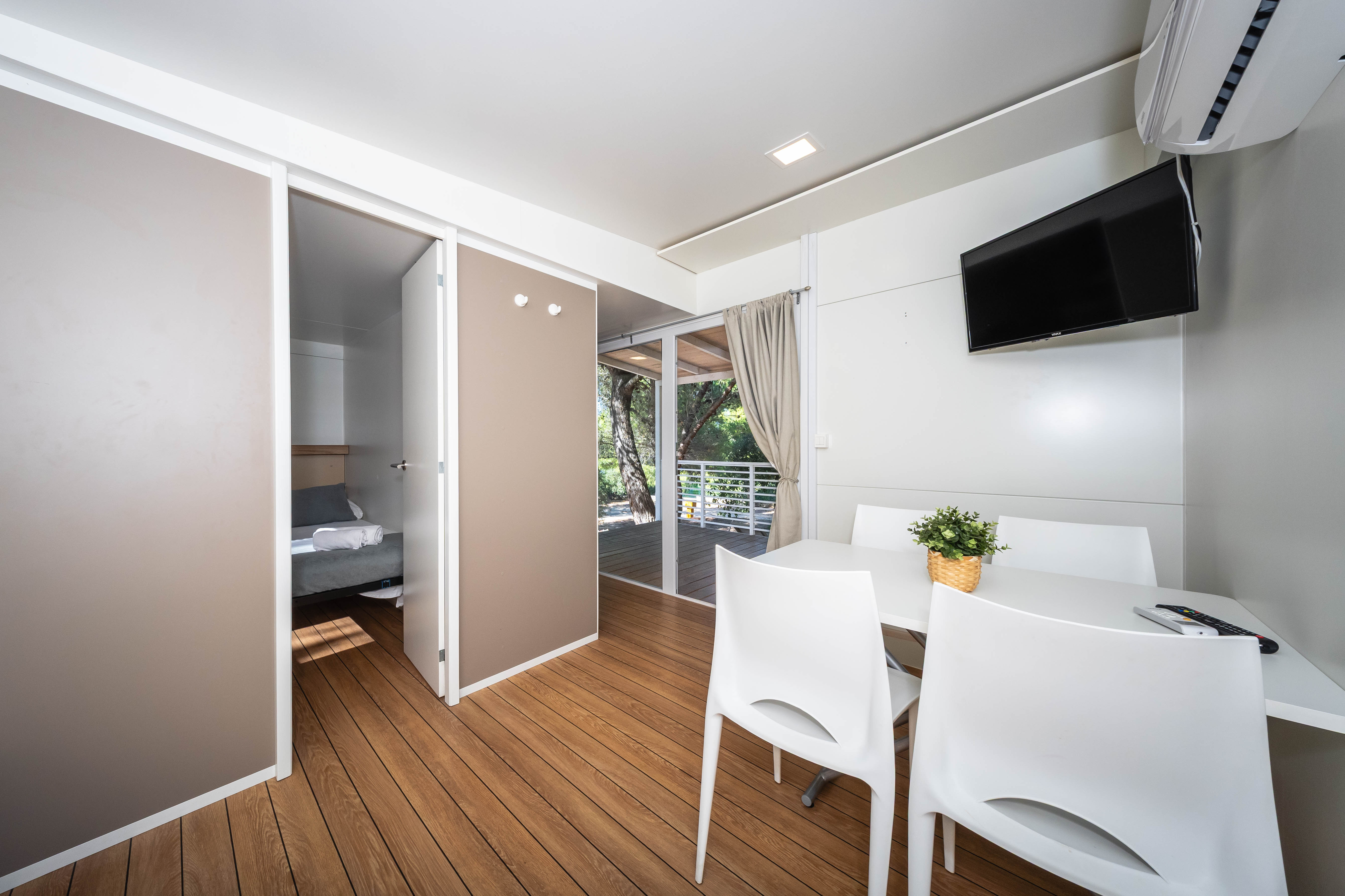La superficie della casa mobile Comfort è di 30 m2. Tutte le case sono completamente arredate con un ampio terrazzo coperto. Il posto macchina si trova proprio accanto alla casa. *Questa casa mobile e' disponibile in piu' variazioni.