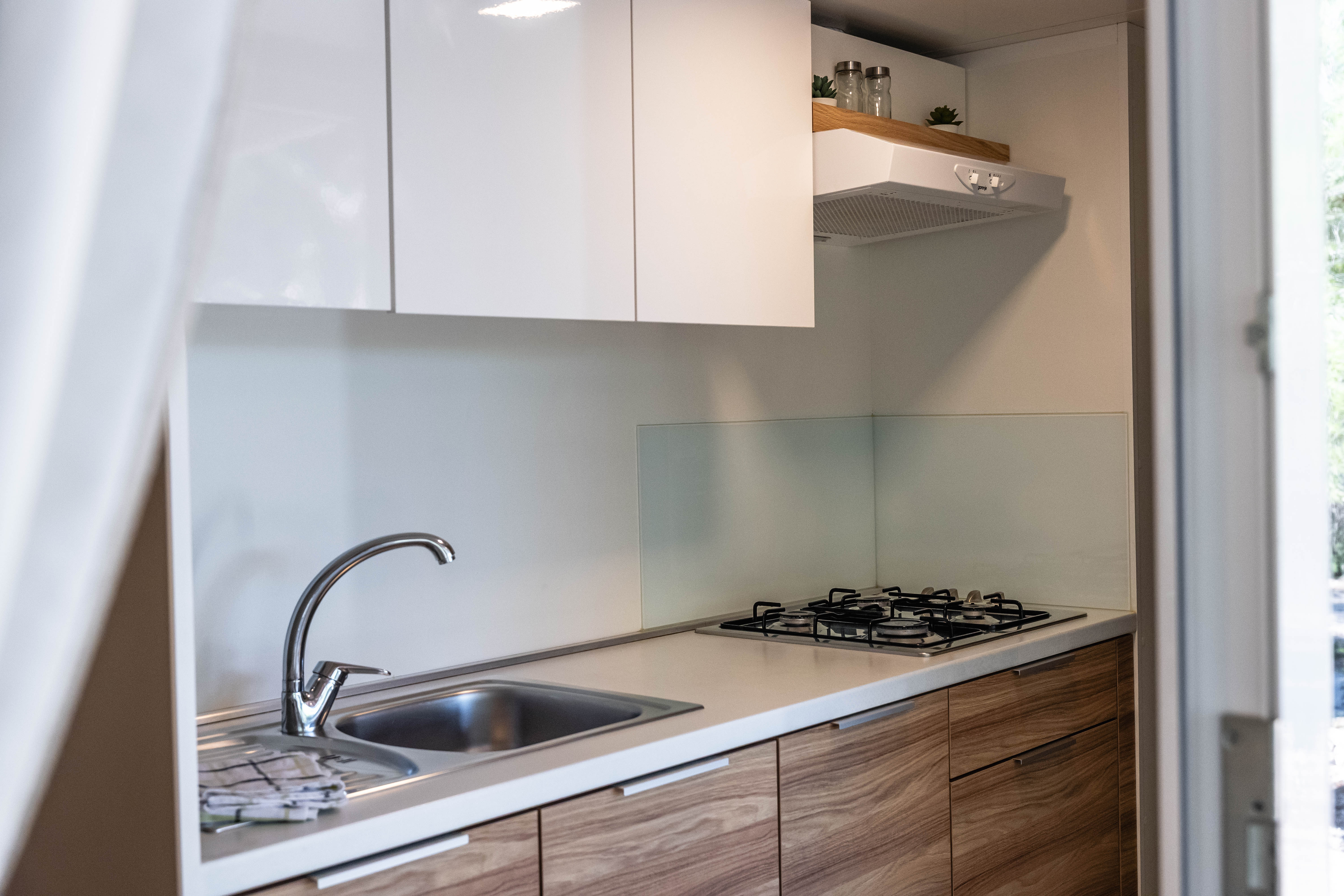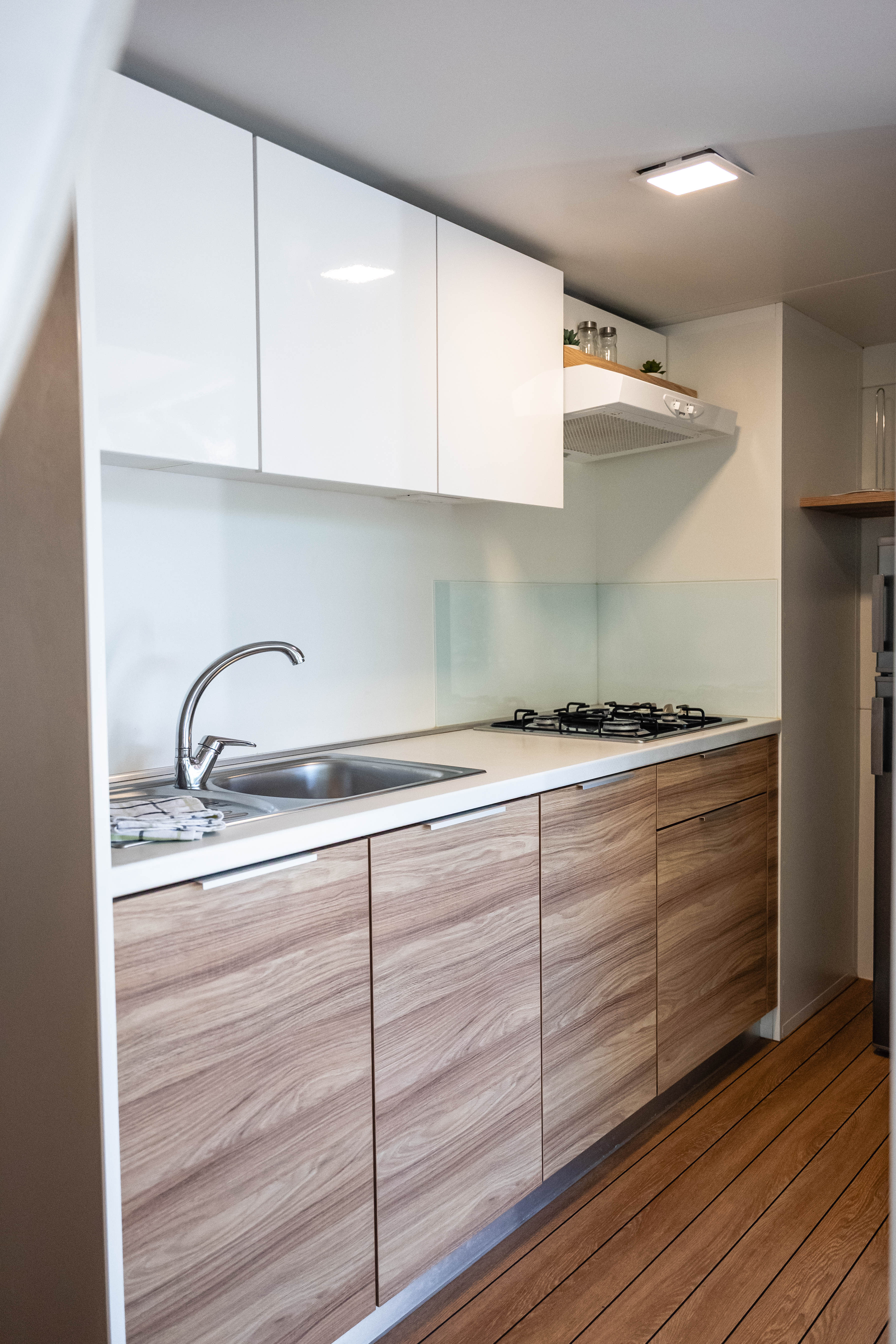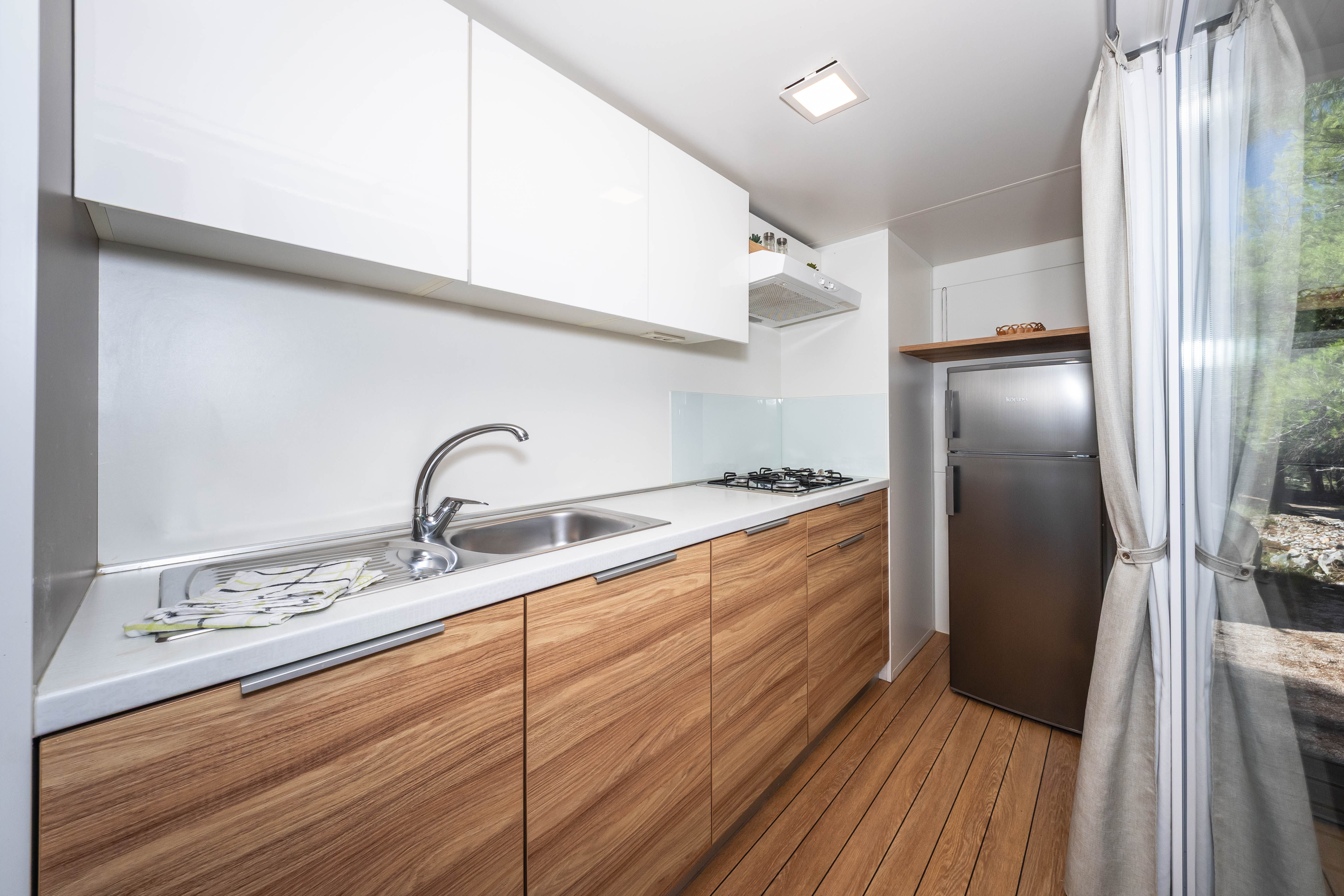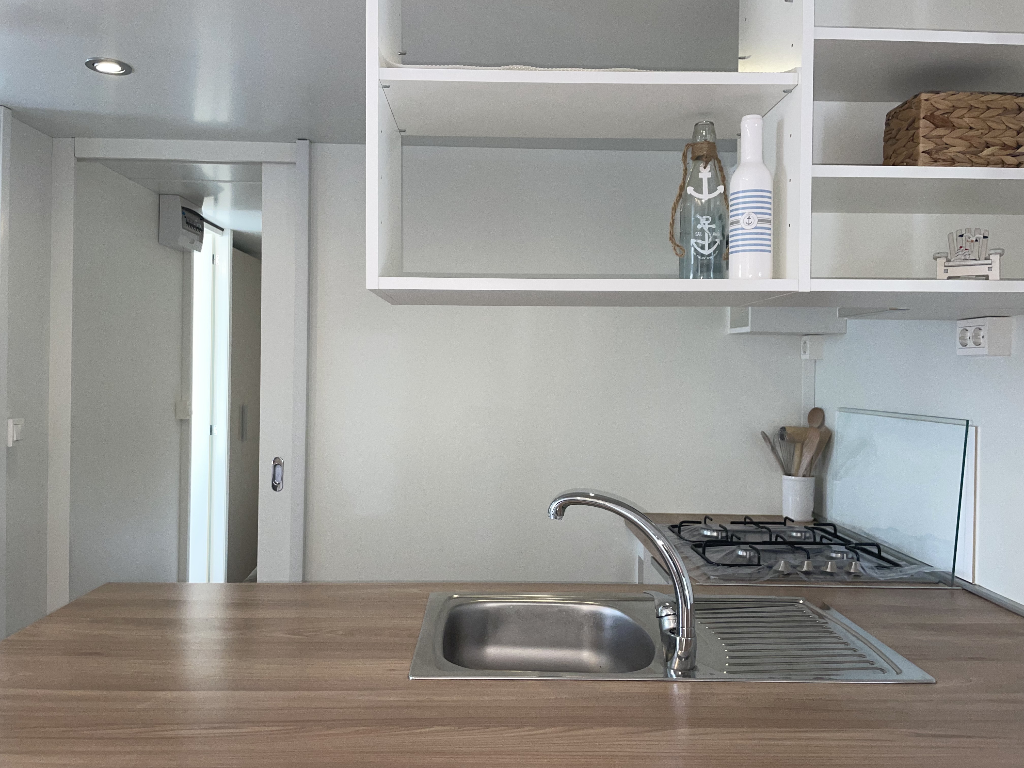 La superficie della casa mobile Comfort è di 30 m2. Tutte le case sono completamente arredate con un ampio terrazzo coperto. Il posto macchina si trova proprio accanto alla casa. *Questa casa mobile e' disponibile in piu' variazioni.